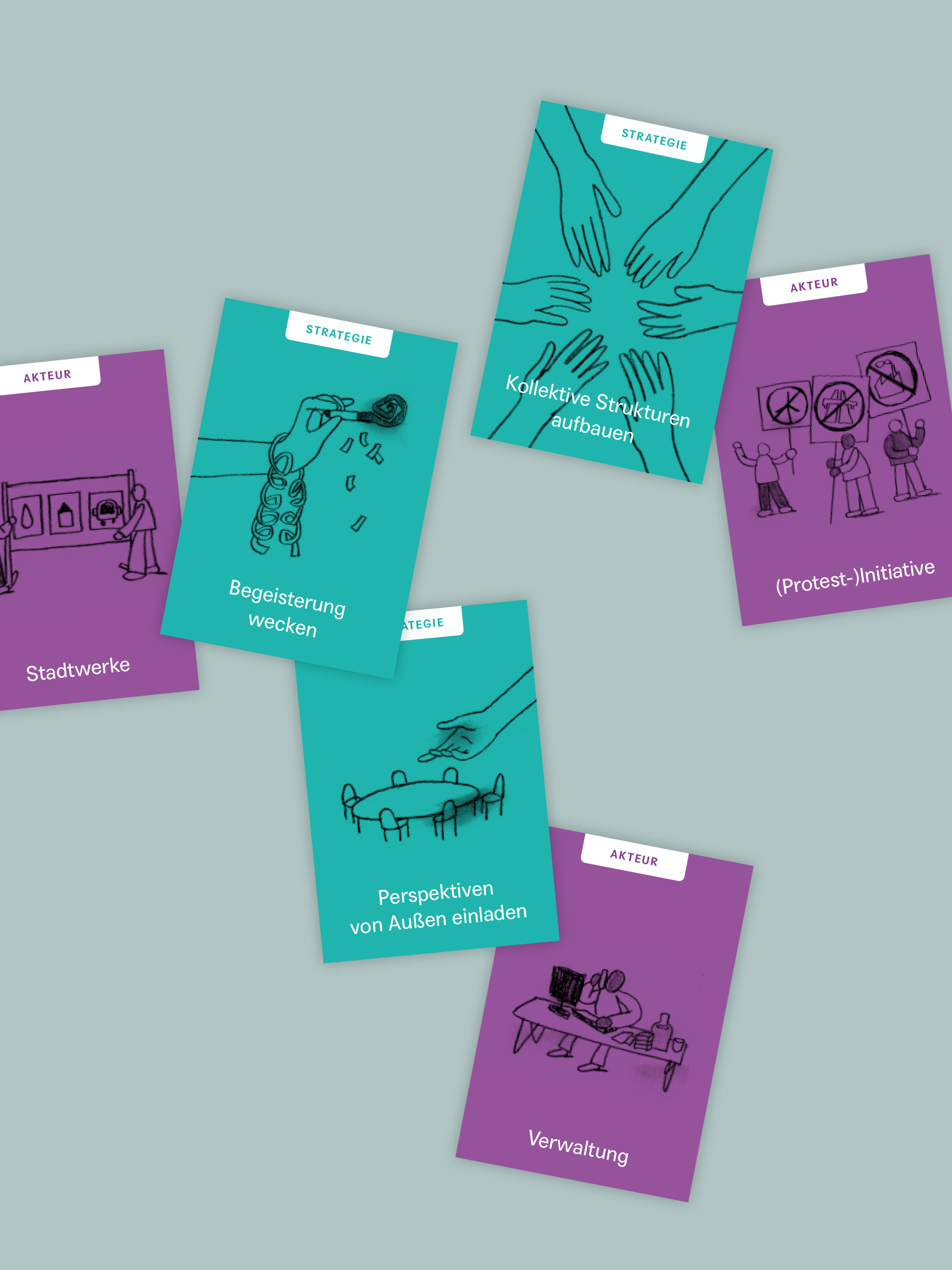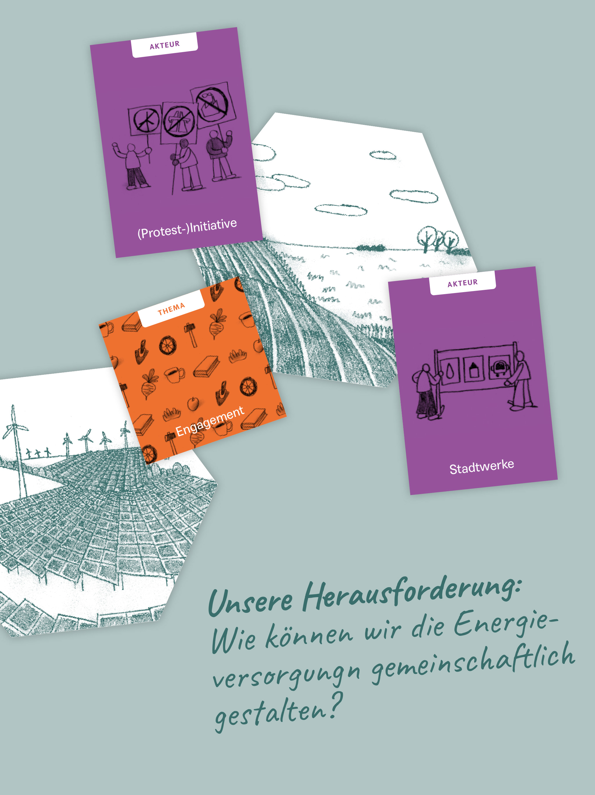 Das Kartenset hat kein festes Spielziel im herkömmlichen Sinne. Vielmehr geht es darum, durch spielerisches Entdecken und Aushandeln neue Perspektiven auf die eigene Region zu entwickeln. Die Karten regen dazu an, vorhandene Potenziale zu erkennen, mögliche Akteure zu identifizieren und konkrete Wege für gemeinsame Projekte zu finden. Das Regiokataster macht Transformation greifbar – nicht als abstraktes Konzept, sondern als etwas, das von Menschen vor Ort selbst gestaltet wird.